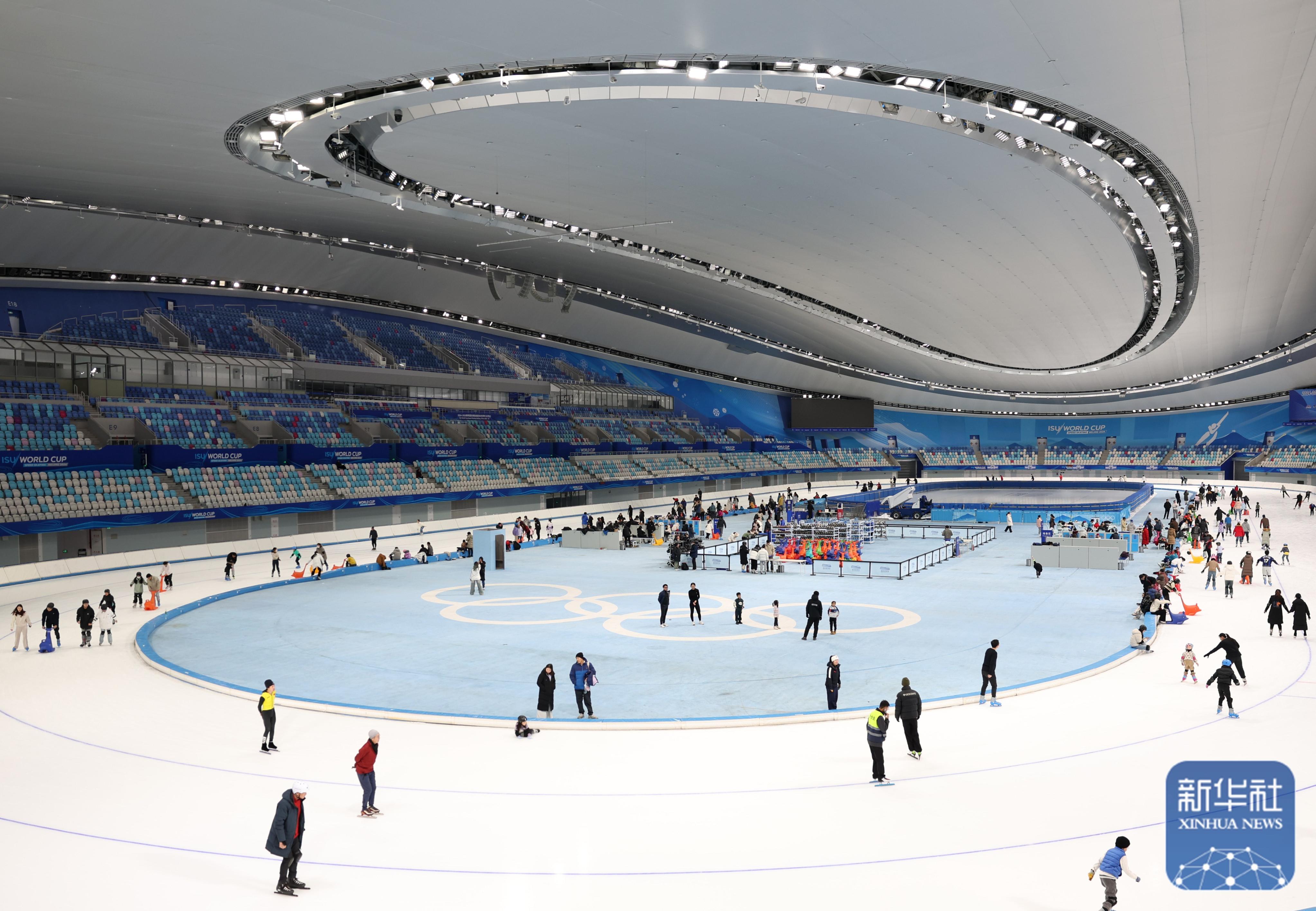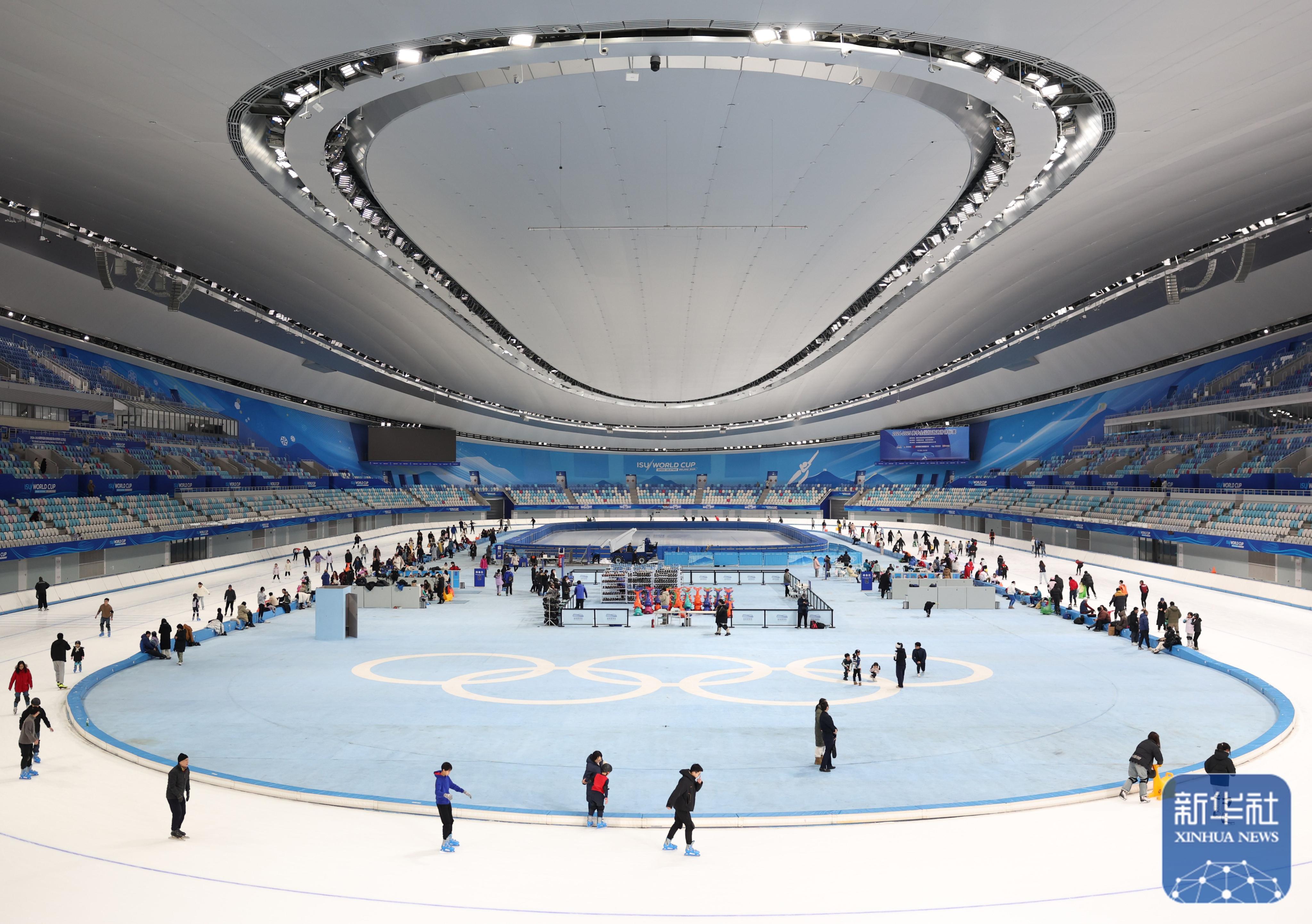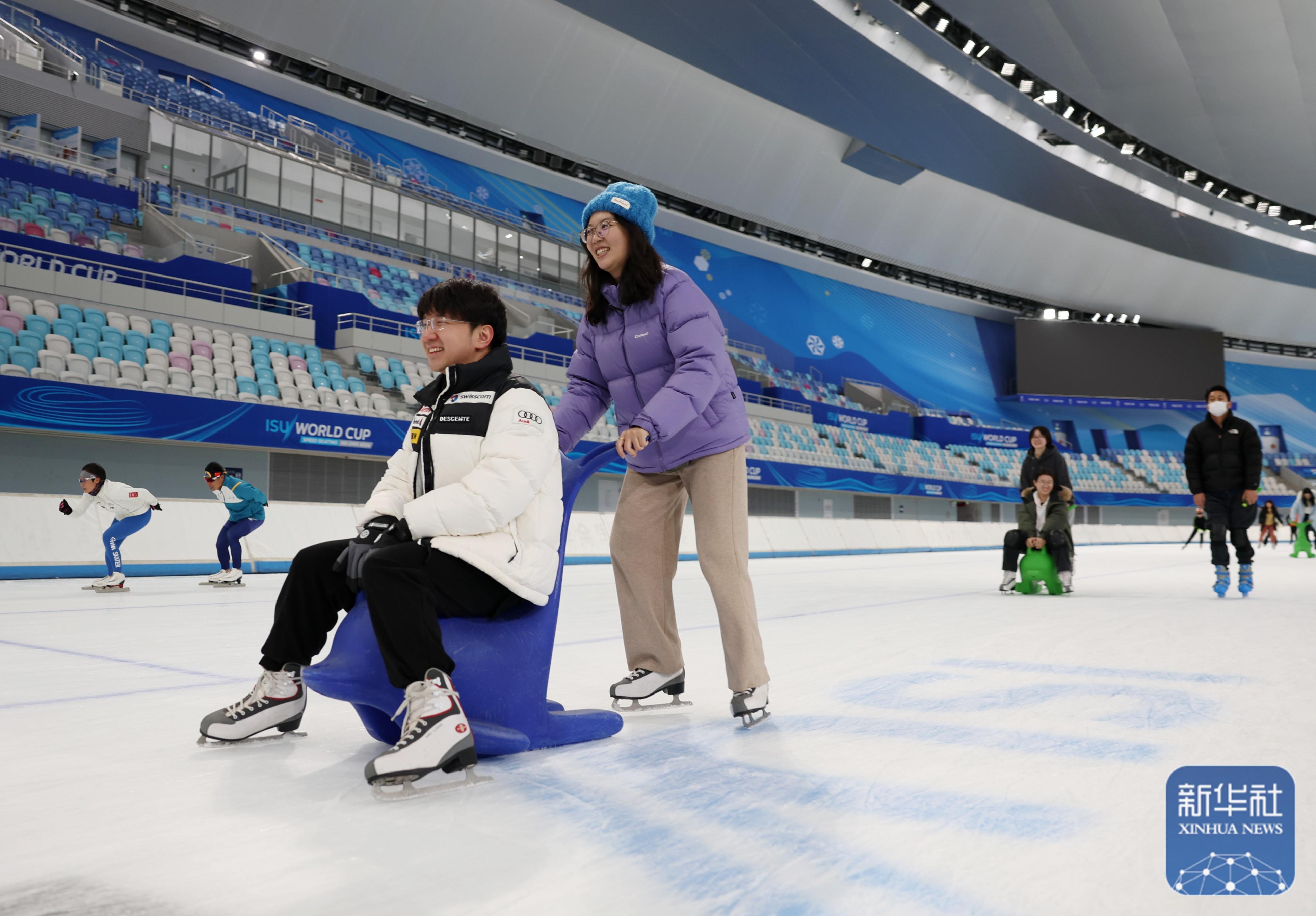 ↑旅客在国度速滑馆体验溜冰(1月4日摄)。新华社记者 张晨霖 摄