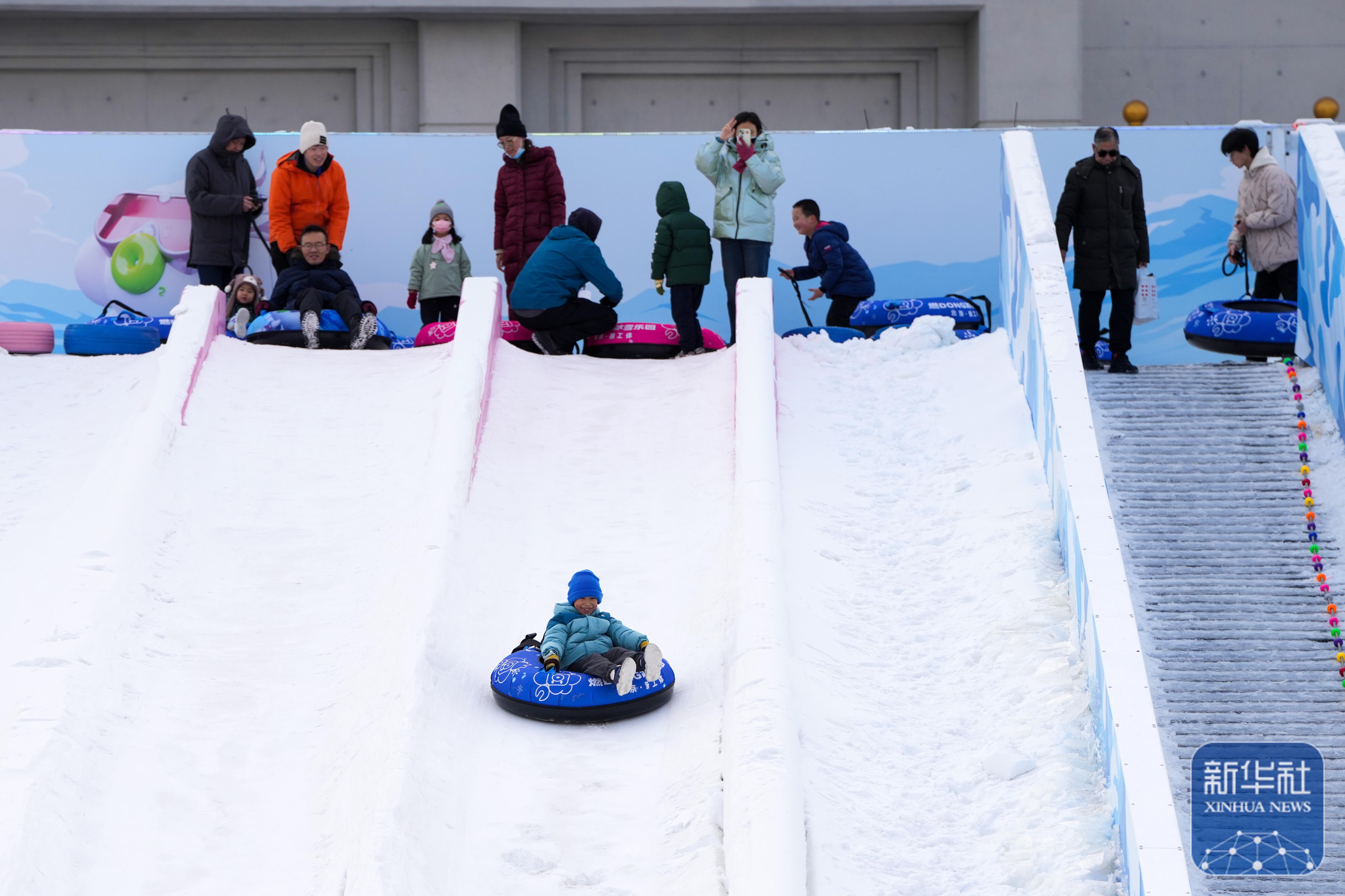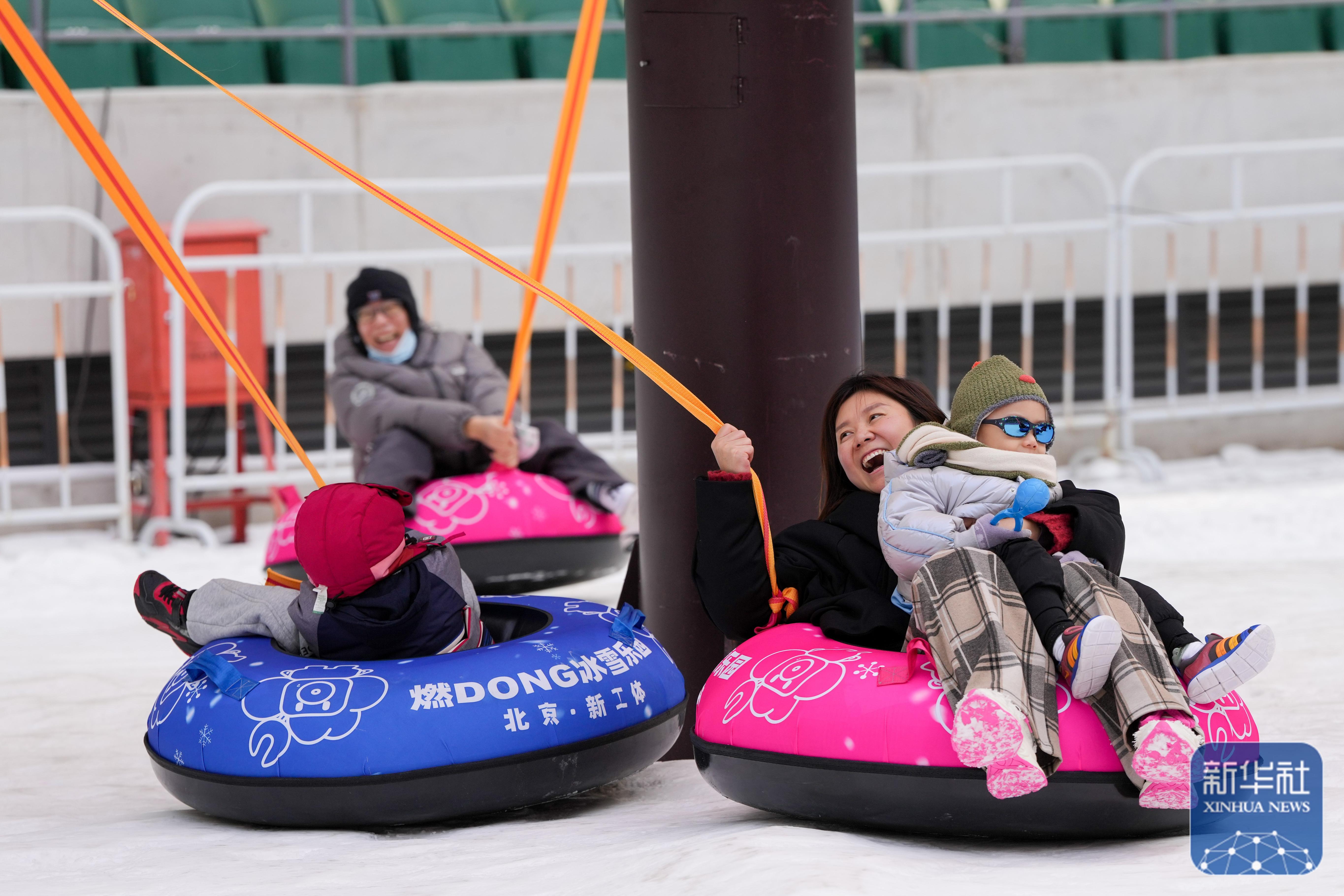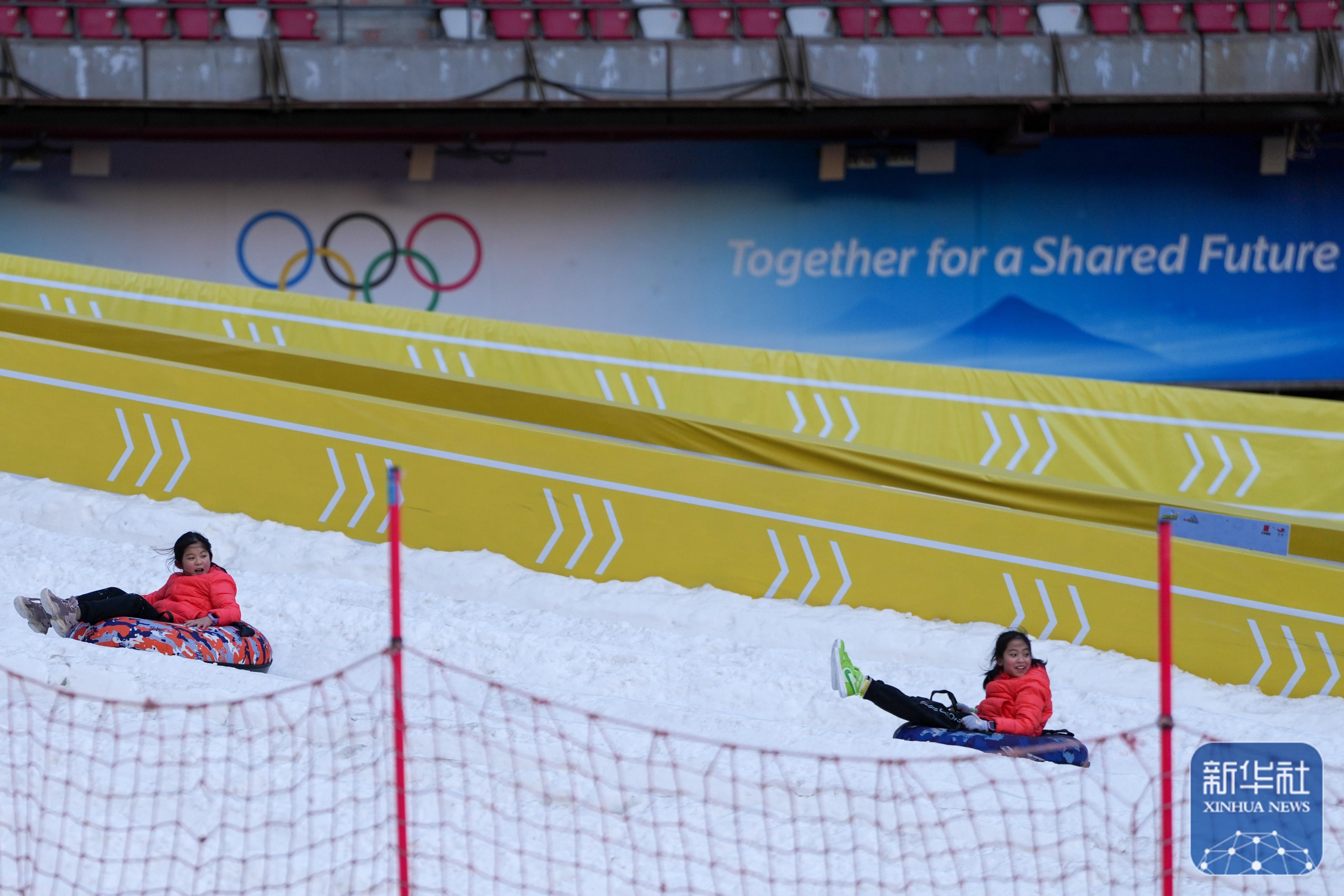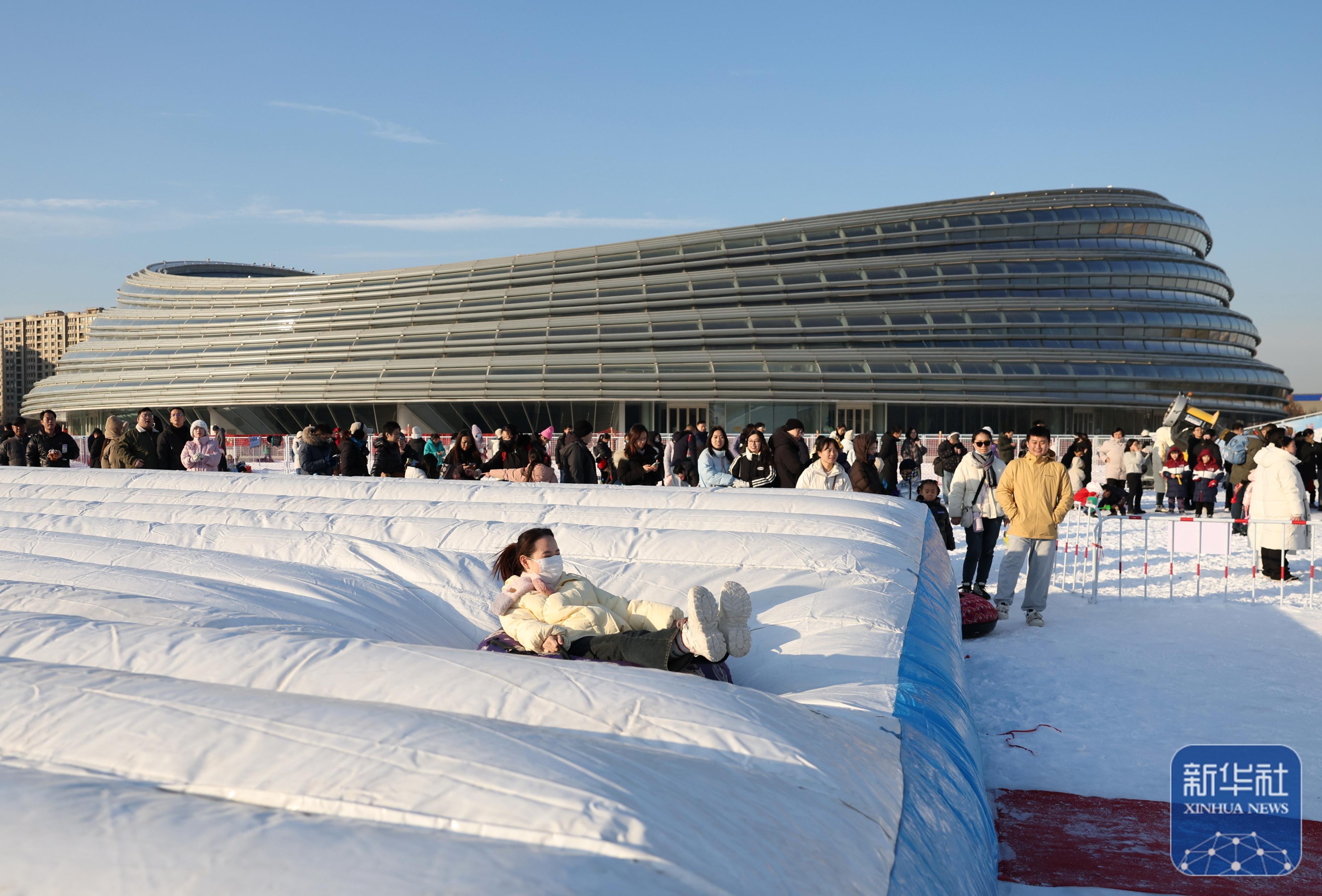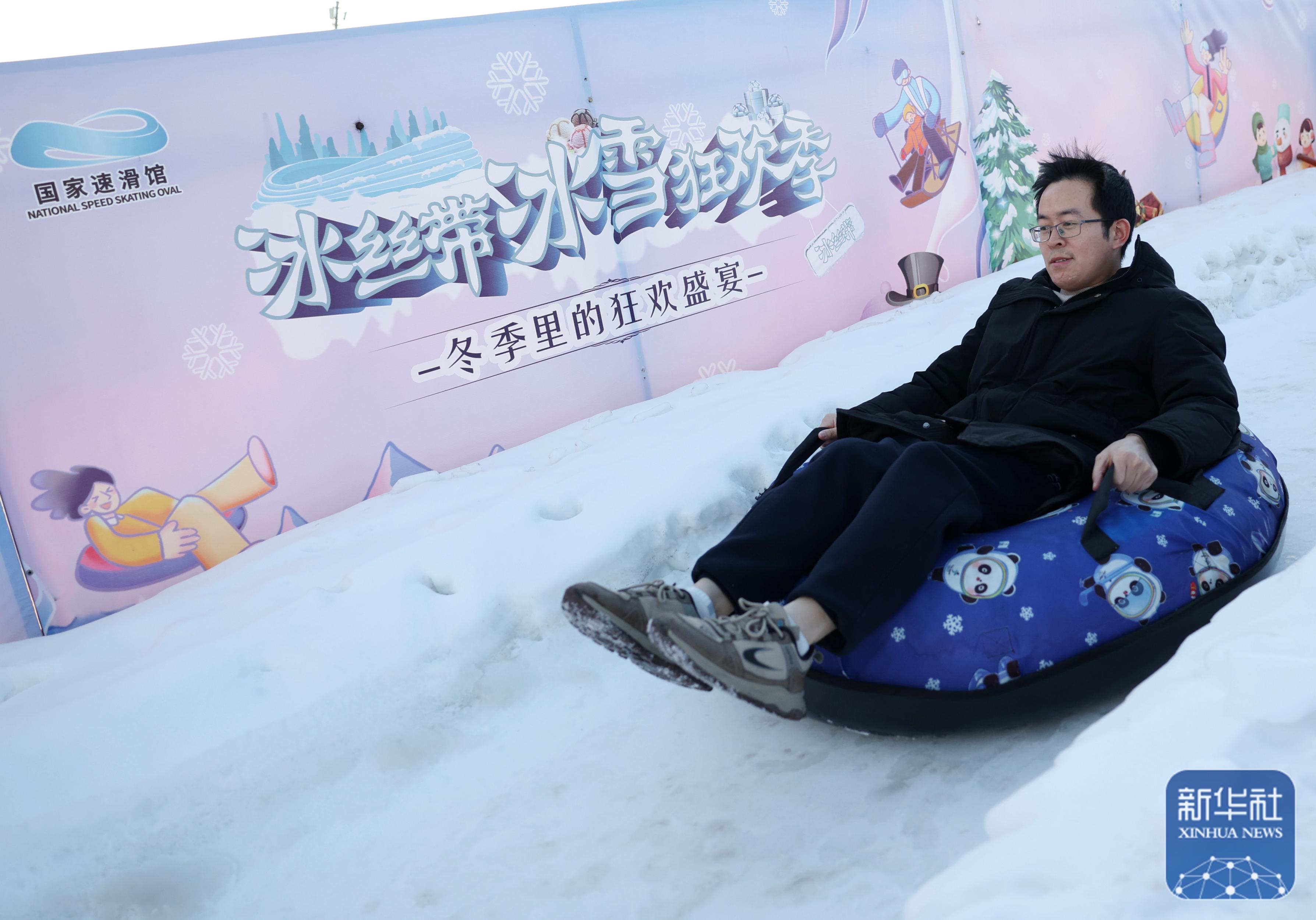 ↑旅客在国度速滑馆“冰丝带”冰雪狂欢季四肢中体验雪上游乐形势(1月4日摄)。新华社记者 张晨霖 摄