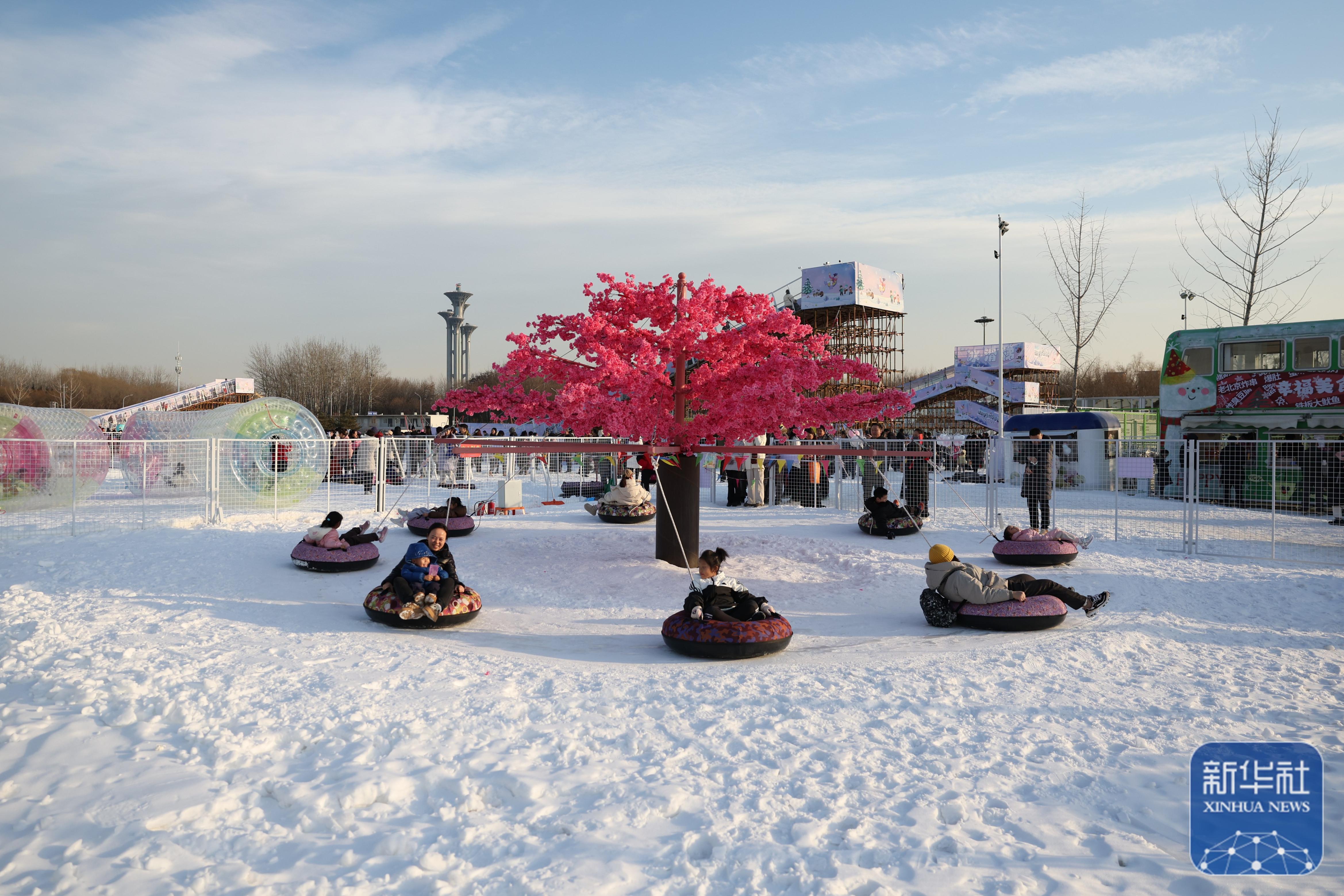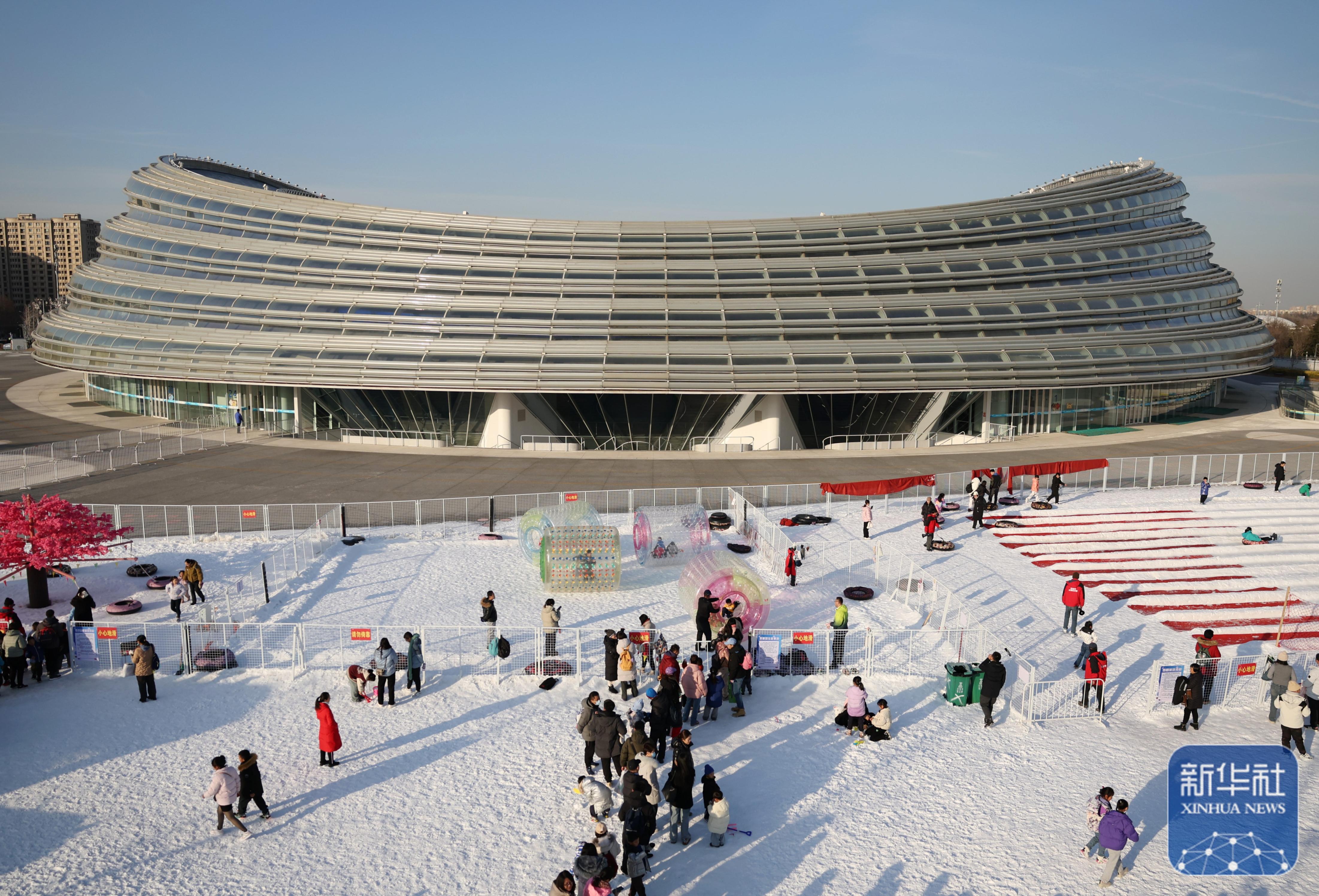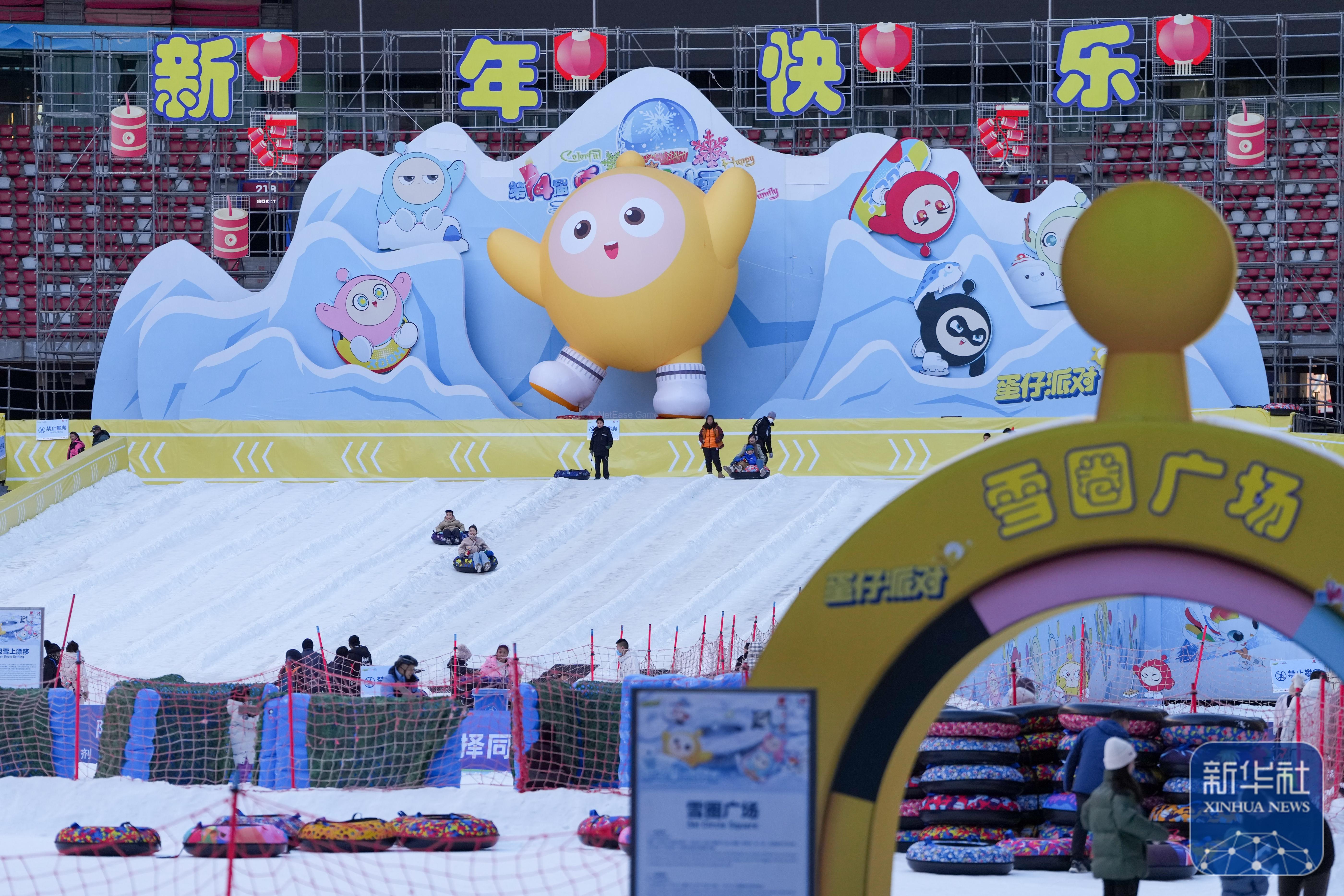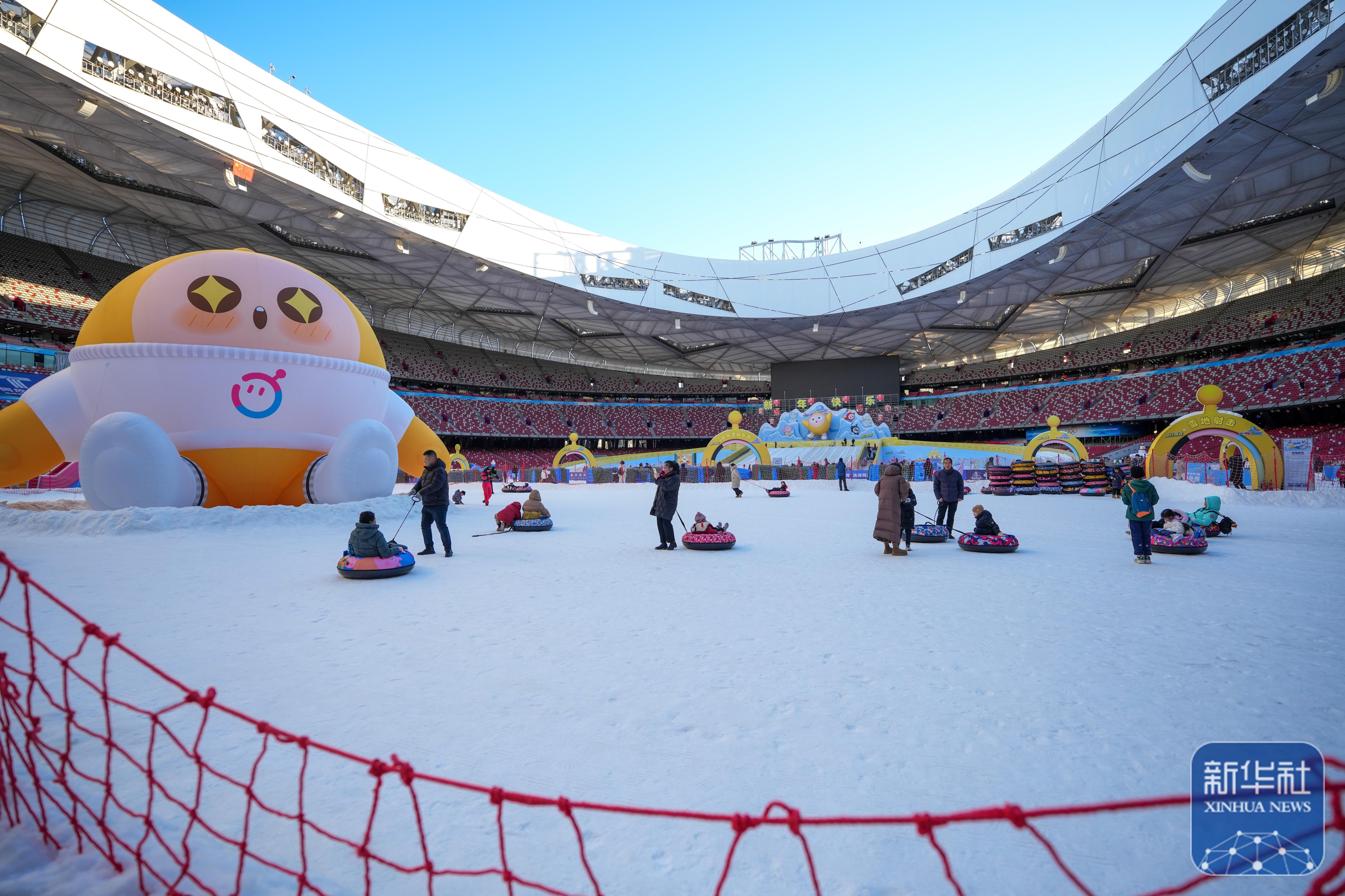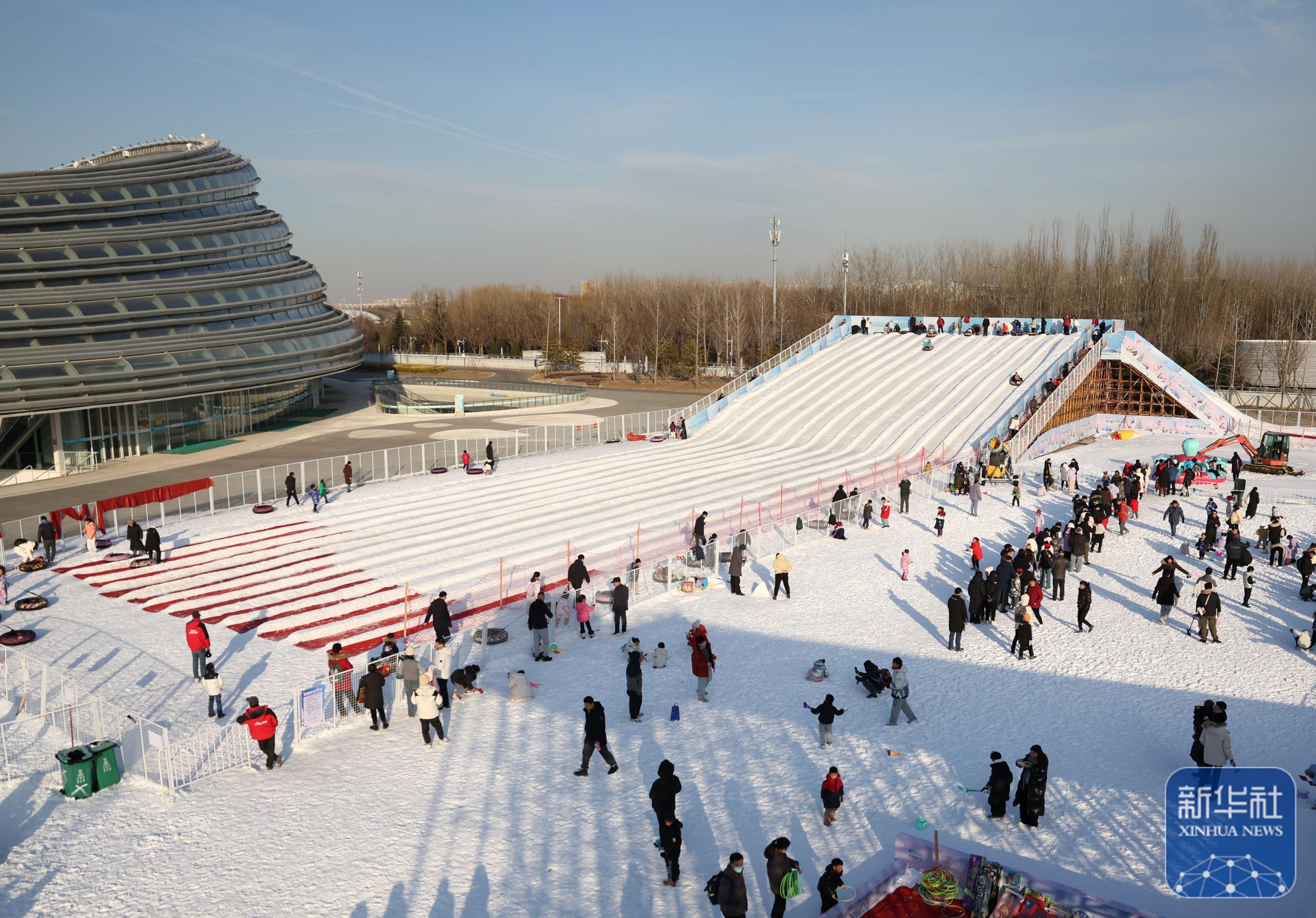 ↑旅客在国度速滑馆“冰丝带”冰雪狂欢季四肢中体验雪上游乐形势(1月4日摄)。新华社记者 张晨霖 摄