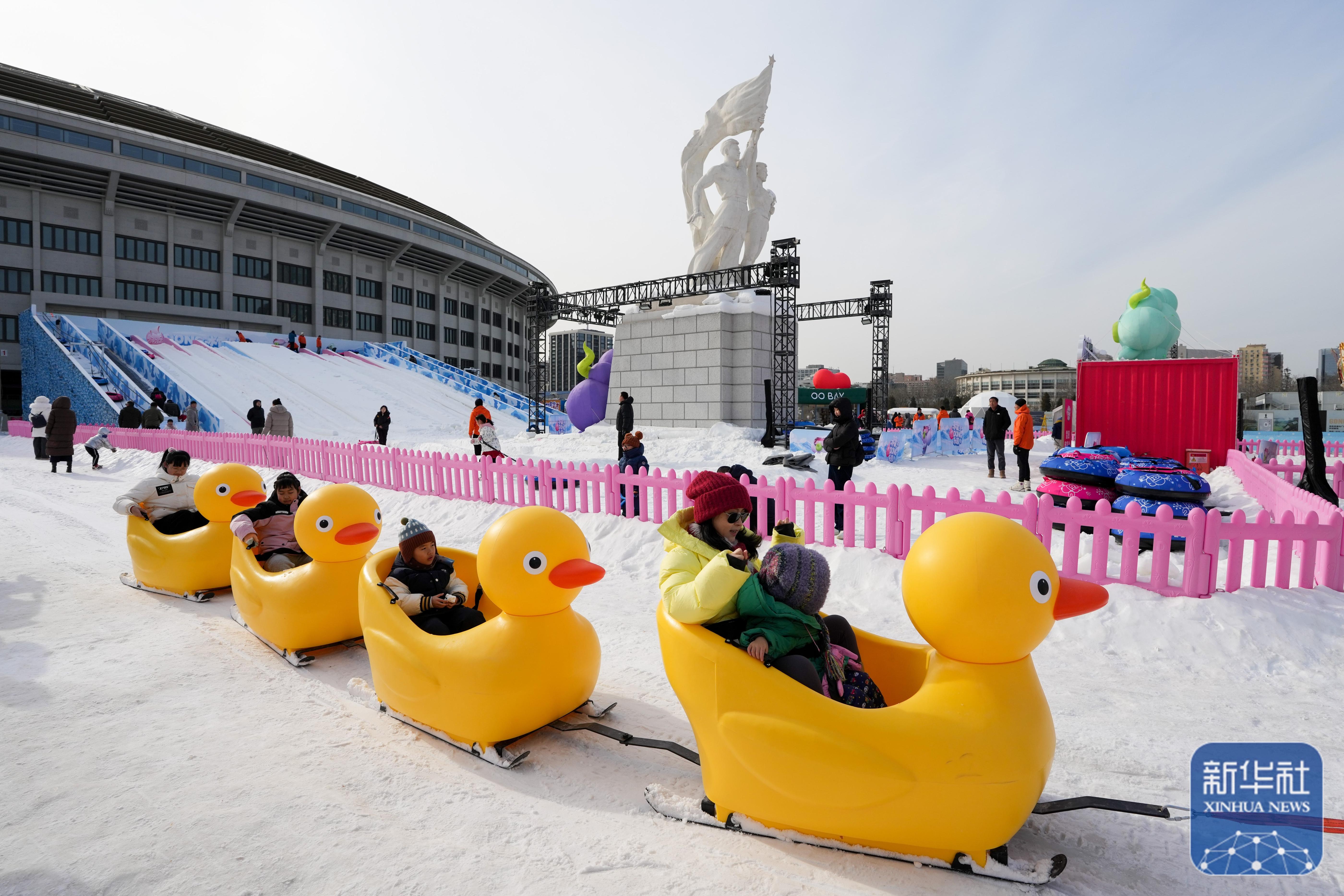 ↑旅客在北京工东谈主领会场“燃DONG冰雪乐土”体验雪地香蕉船(1月1日摄)。新华社记者 鞠焕宗 摄